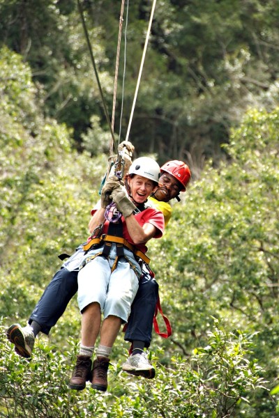 The canopy tour involves traversing from one platform to another along a steel cable suspended up to 35m above the forest floor. The tour comprises of 12 platforms and 10 slides that zig-zag down a forested valley. The longest slide is 200m! The scenery is spectacular and professional guides provide interesting facts about the forest ecology during the tour.